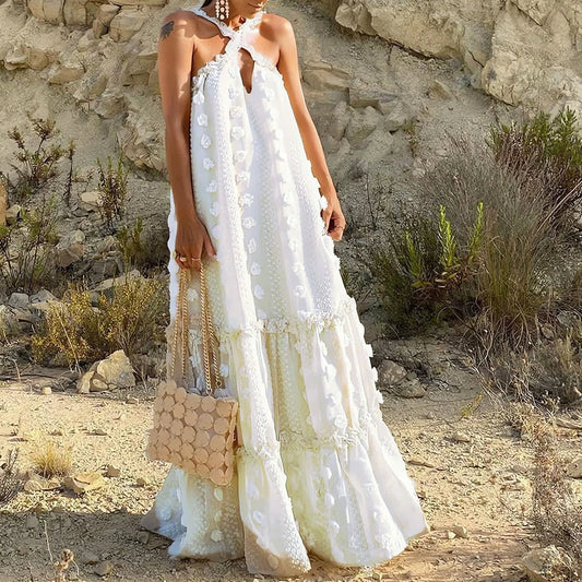 China Factory Fashion Women Crochet Beach Sexy White Hollow Dress