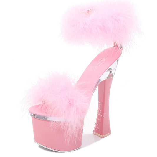 Fur Sandals Nice Ladies High Heel Shoes ABS Platform Designer Trendy 18cm Big Size Women Shoes Square Heel Super High (8cm-up)