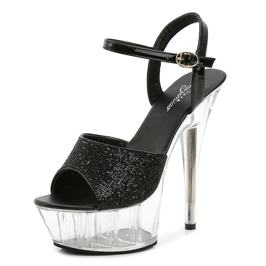 OEM ODM Fashion Summer ladies clear wedge heel sandals 8cm wedges High Heels Shoes for Ladies and Women
