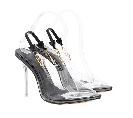 Transparent Pumps High Heels Wedding Dress Shoes Women Sexy Pointed Toe Chain Design Crystal Heel Ladies Shoes C13789