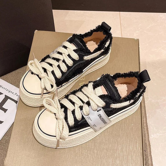 2024 thick sole ladies sneakers size 35-40 Chunky pink platform canvas shoes for women