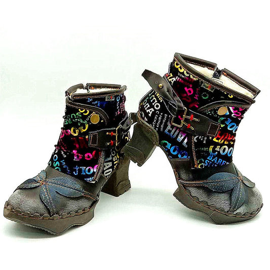 Genuine Leather Ankle Boots Square Toe Boots Rubber Riding Women's Shoes Ladies Chunky High Heel Zipper Winter Boot