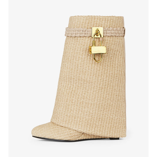 Winter New Arrival Designer Short Boots Women Round Head Slope Woven Large Size Locking Leather Ankle Boots Women