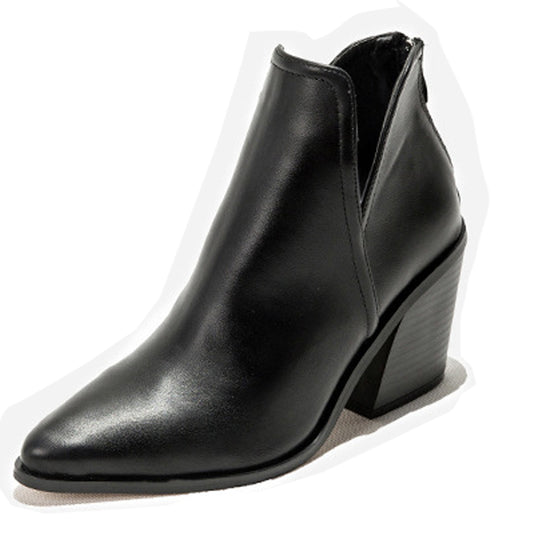 Fashion 2022 Women Solid Color Europe Hollow Out PU Leather Ankle Boot Low Heel Slip-On Shoes Mules Pointed Toes Casual Boot