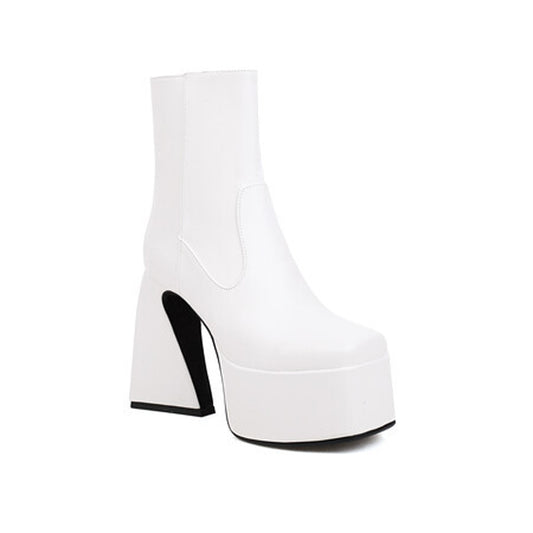 BUSY GIRL XY3049 Black Red Microfiber Leather Fashion Designer Heel Women Platform Ankle Boots Fall Style Ladies Shoes