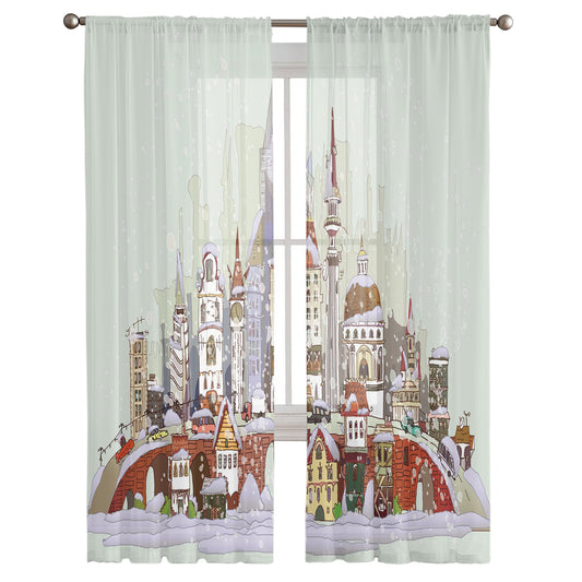 Christmas Tree Snowman Elk Winter Santa Print Curtains Cafe Holiday Window Curtains For The Living Room Luxury