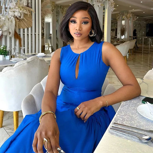 Women's Clothing New Arrival Summer 2024 Women Crew Neck Hollowed Out Slimming Mid Length Sleeveless Dress Lady Dresses