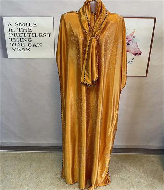 African Kaftan Kanga Muslim Women Dresses Traditional Wear Silk Satin Africa Maxi Casual Abaya