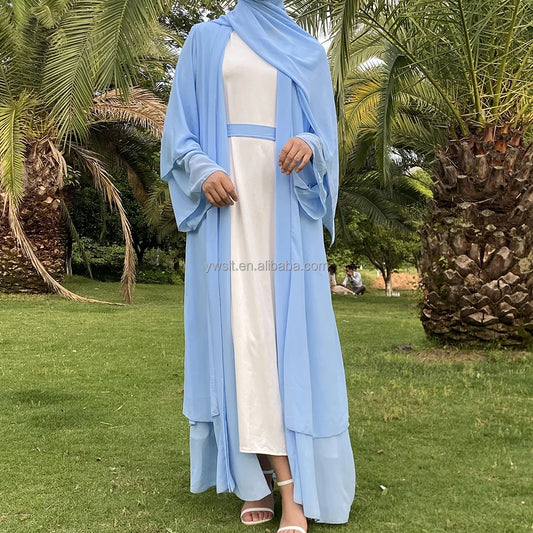 Wholesale Turkey Oman Elegant Kimono Islamic Clothing Women Muslim Dress Two Layers Chiffon Modest Muslim Dress Open Dubai Abaya