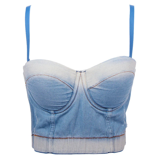 Boutique Customization Washed Style Denim Corsets Top Sling Corset Tops for Women Sexy