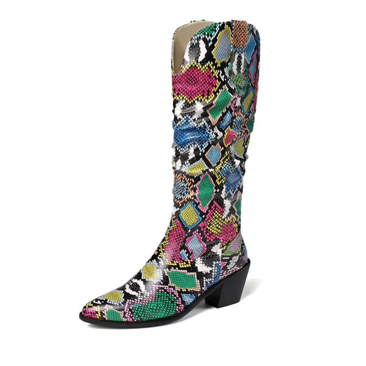 Cowboy high boots 2021 new large size snake print color fashion boots autumn and winter shoes