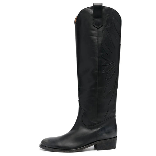 BUSY GIRL XYF4841 Black Brown New Embroidery Cowboy Boots Women 2023 Fashion 6cm Block Heels Ladies Western Knee High Boots