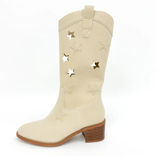 New Western Ladies Mid Calf Boots Pointed Toe Low-Heeled Rodeo Cowboy Women Boots With Chunky Heels