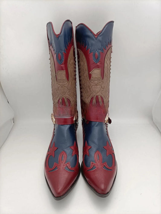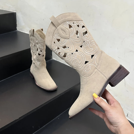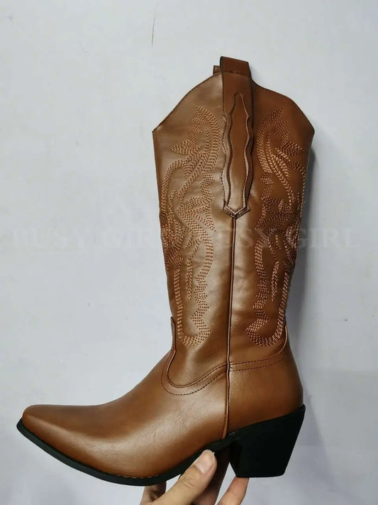 BUSY GIRL MZX3001 2024 New Color Embroidered Women Boots Low Block Heels Ladies Shoes Western Cowboy Boots For Women