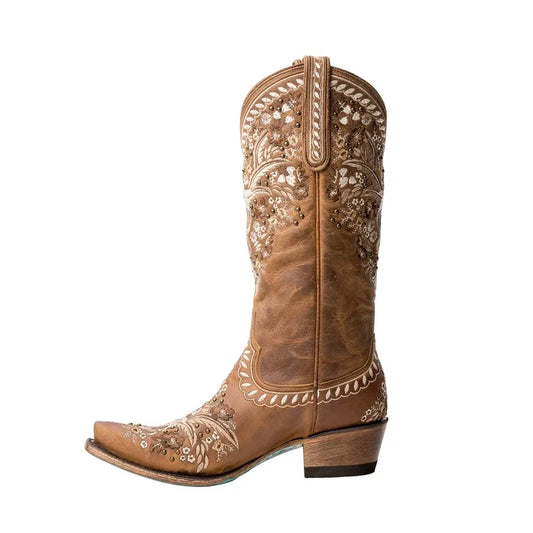 Dropshipping Custom Logo Western Cowboy Boots Women Shoes Thick Sole Vintage Style Design Boots for Ladies