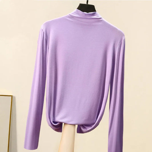 soft four way stretch tight fitting women's tops with mock neck turtleneck long sleeves women t shirts