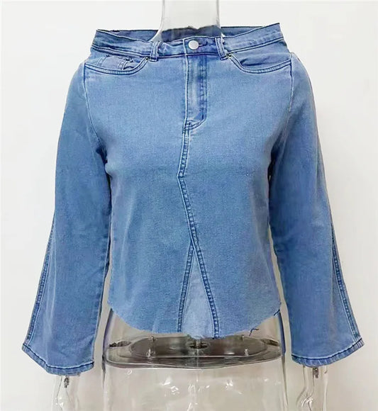 YP 2023 Custom Logo Woman Tops Fashionable Solid Color Long Sleeve Women Denim Top