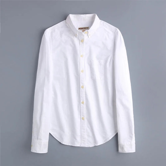 Women Long Sleeve Cotton Oxford Shirts Lapel Collar Pockets Solid Color Button Blouse Loose Tops Clothes Base Shirt