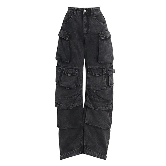 OUDINA Wholesale Ready To Ship Wide Leg Pants Ladies Baggy Casual Femmes Pantalon Women Denim Cargo Jeans Women