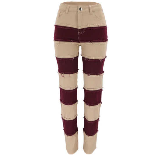 2022 Women High Waist Slim Stretchy Patchwork Denim Pants Jeans