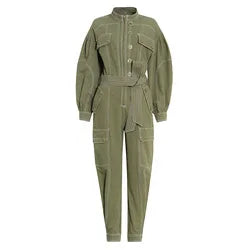 2022 New Tooling One Piece Jumpsuits Army Green Pocket Bow High Waist Women Denim Jumpsuit