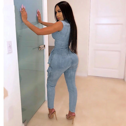 Womens Autumn Vintage Sleeveless Backless Denim Outfit denim jumpsuit
