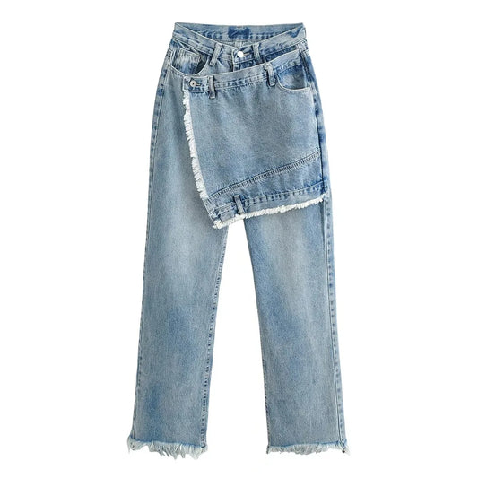 Fashion designer irregular lady baggy straight denim jeans trouser pant for women 2023 y2k high waist blue women's jeans