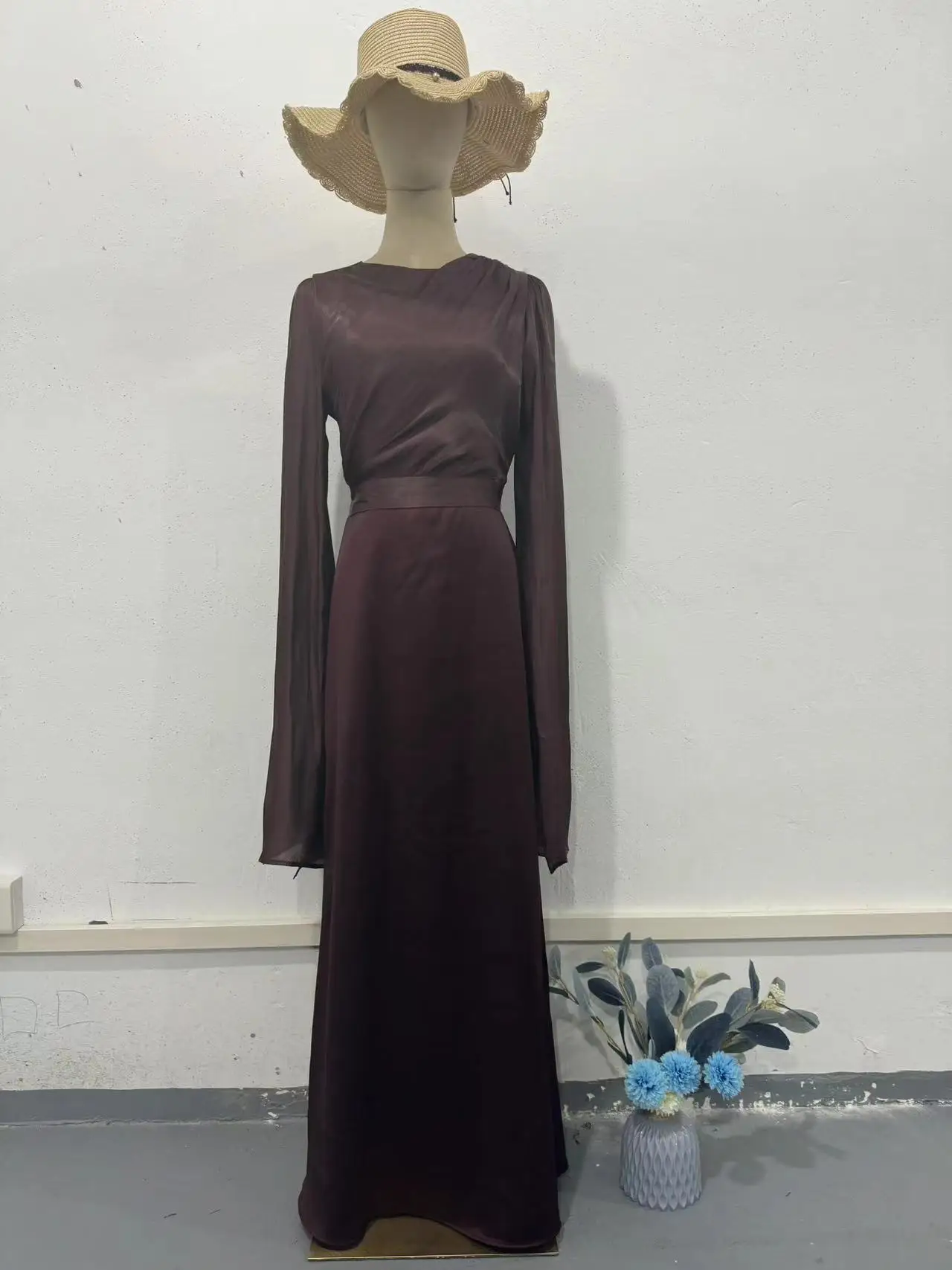 Autumn Satin Long Dresses for Women Flare Sleeve Slim Mermaid Spring French Vintage Wedding Party Prom Robe Vestidos Para Mujer