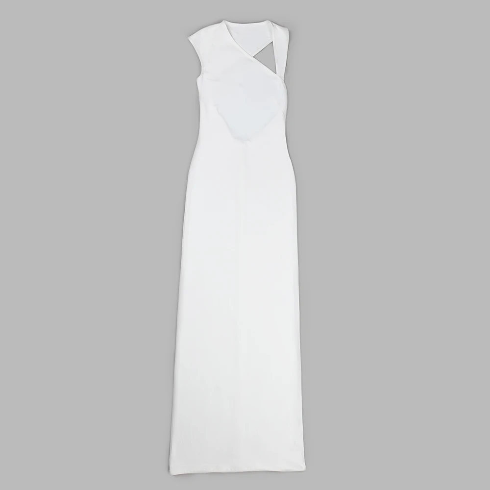 BD2277 Kimshein Elegant Ladies White Design Sleeveless Hole Shoulder Backless Long Dinner Dresses Evening