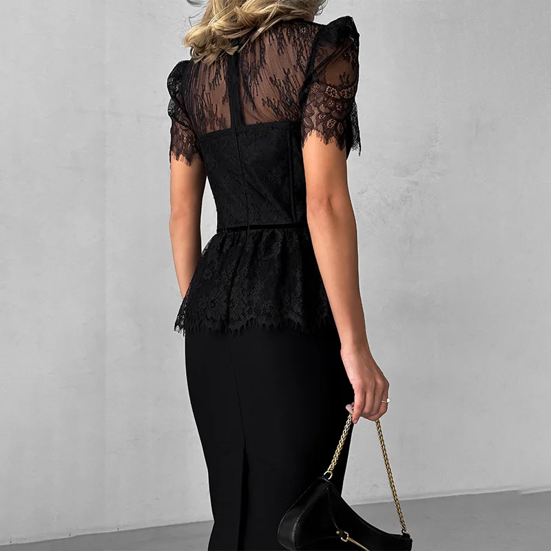 Bettergirl 2025 Women's Spring New Sexy Solid Color Dress Splicing Lace Embroidery Design Mid-length Dress