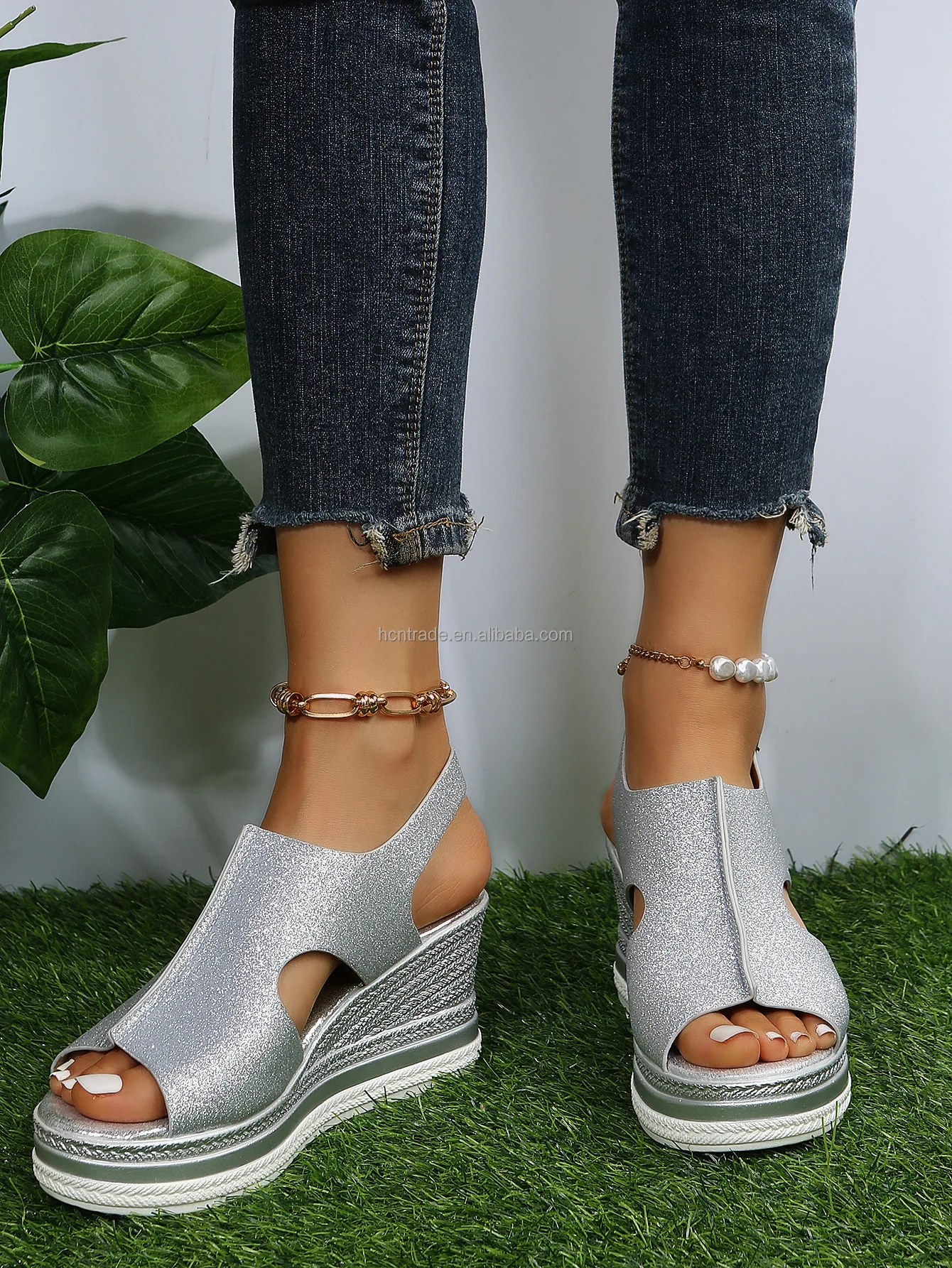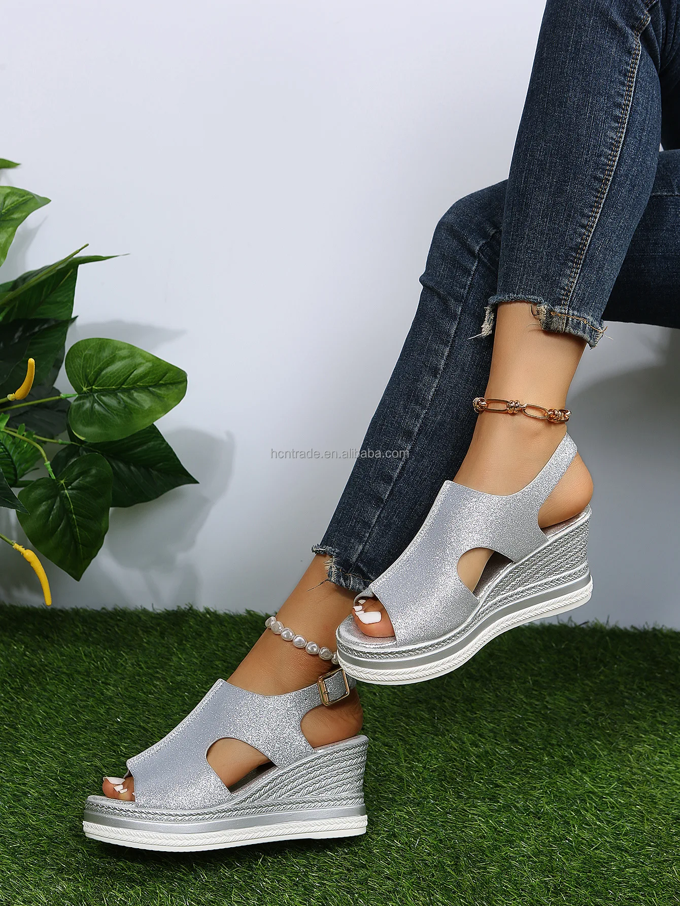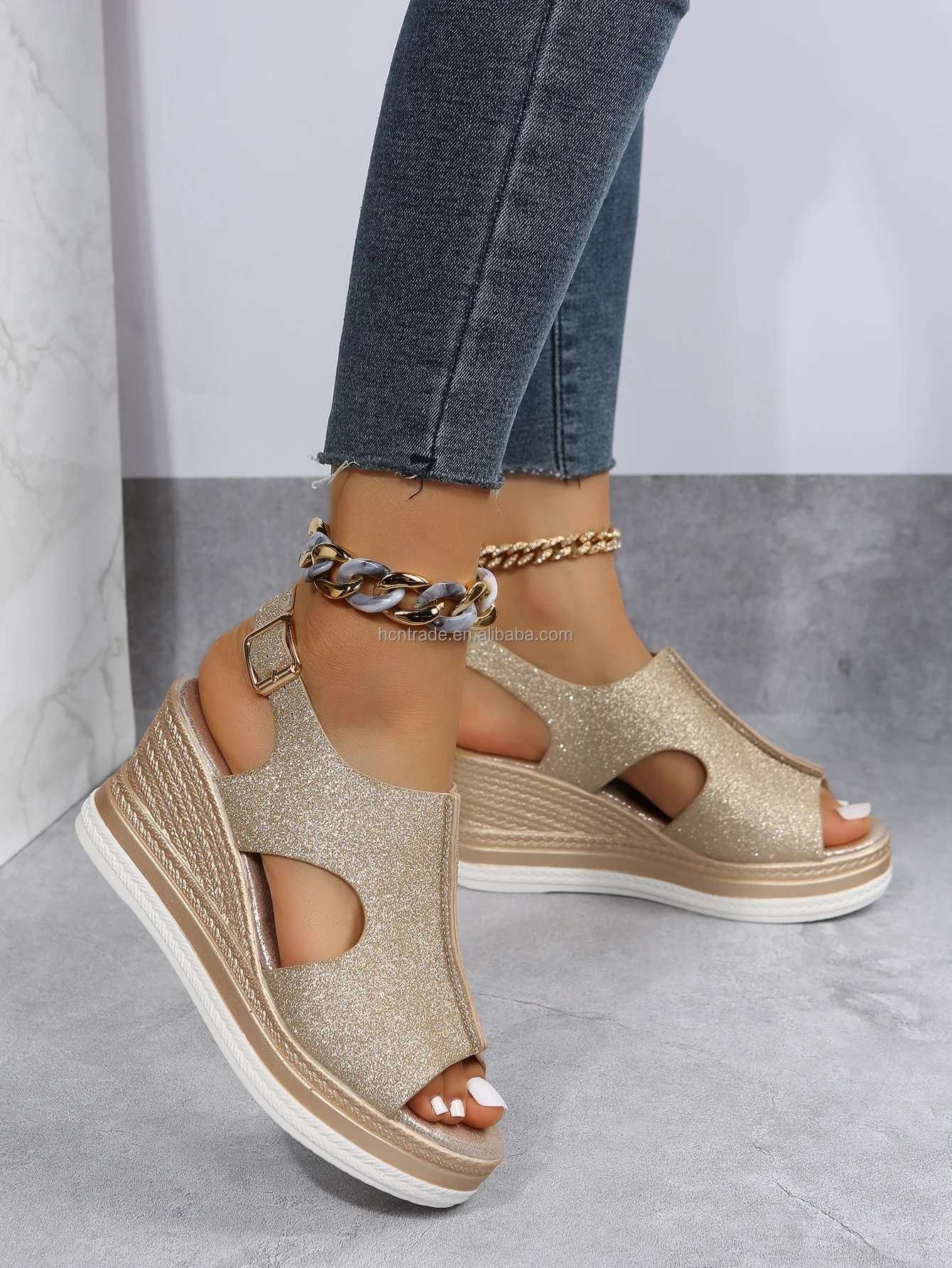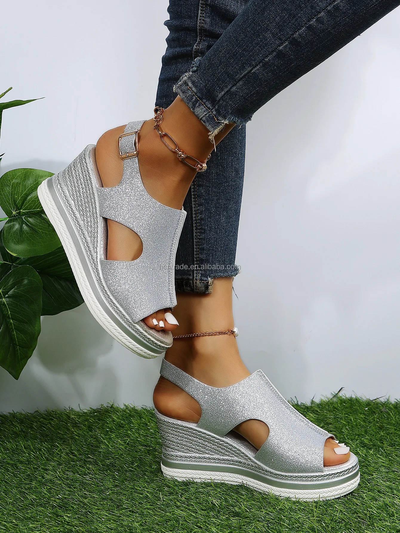 BUSY GIRL LD462 Sliver Gold Wedge sandals 2024 custom shoes for women fashion sandals women platform sandals