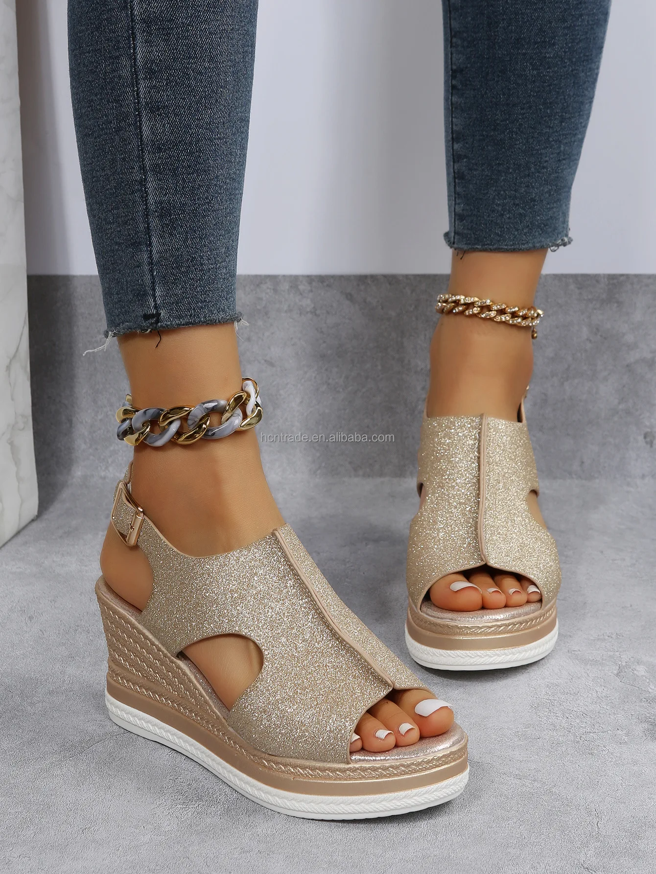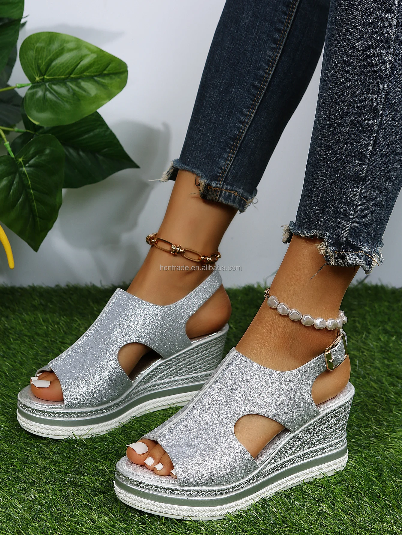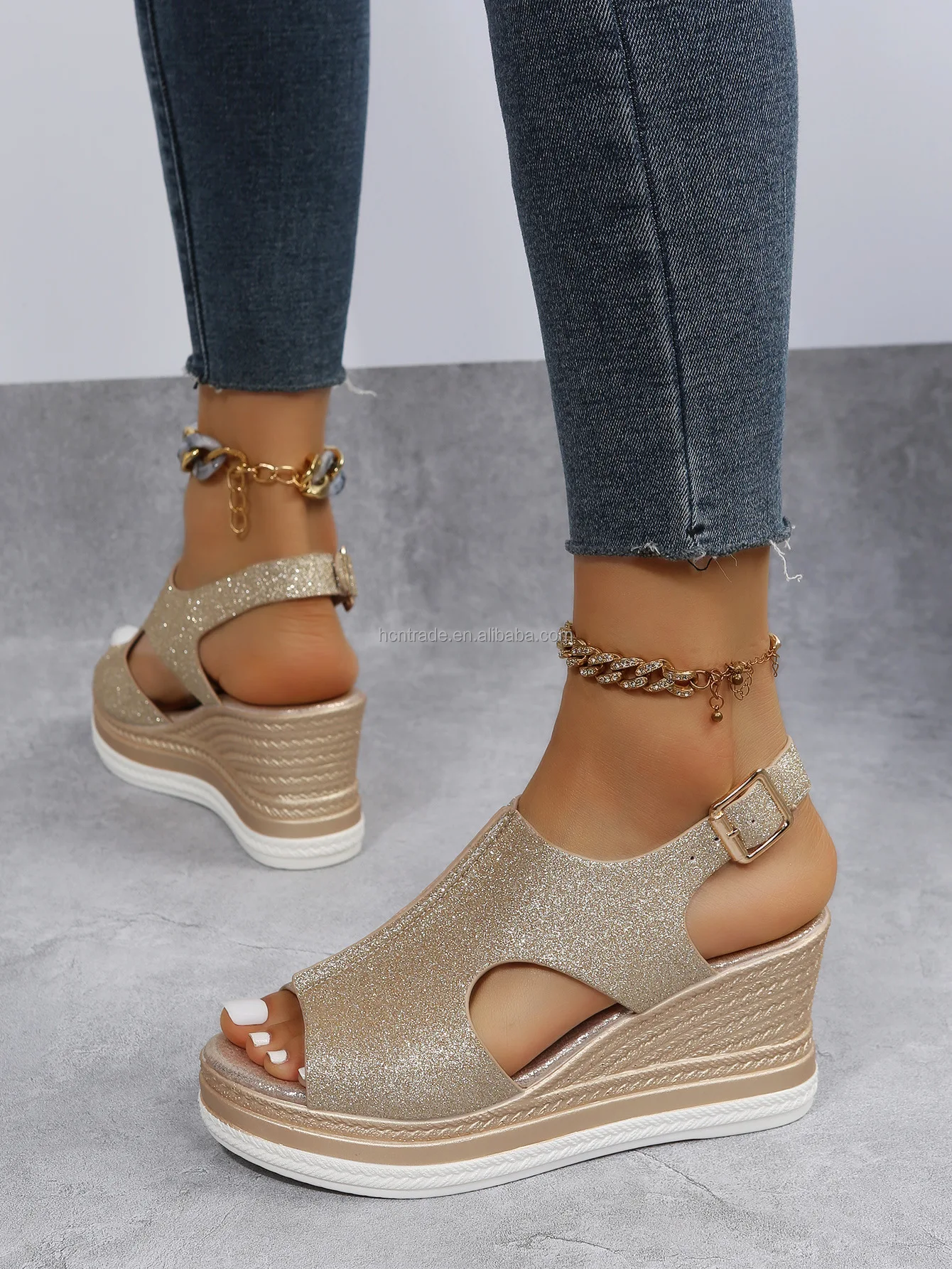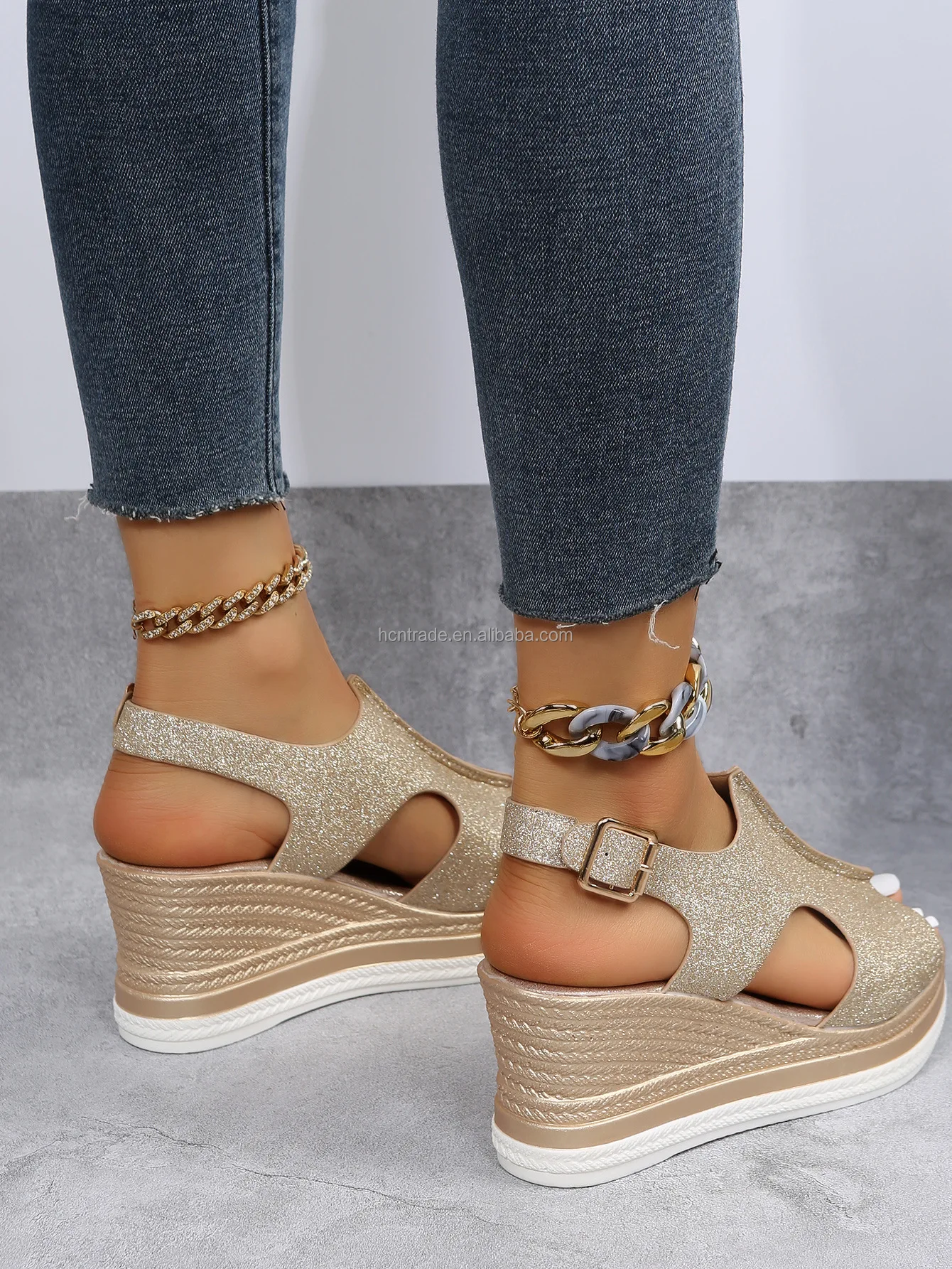 BUSY GIRL LD462 Sliver Gold Wedge sandals 2024 custom shoes for women fashion sandals women platform sandals