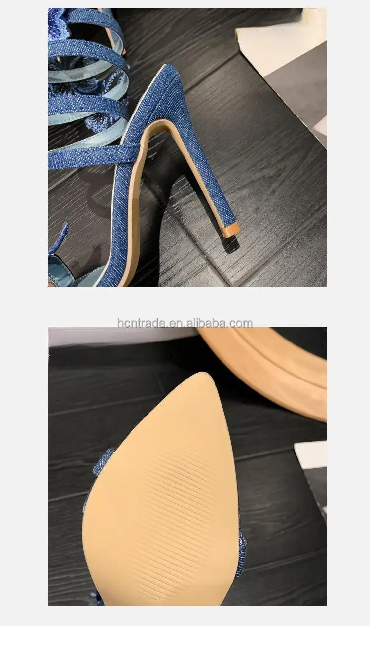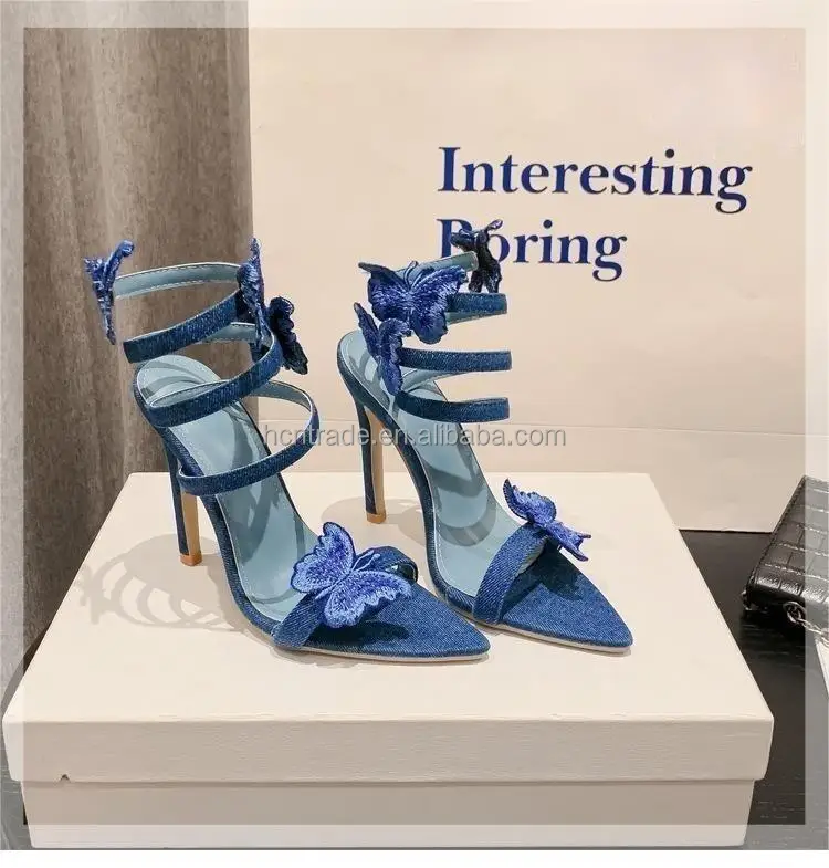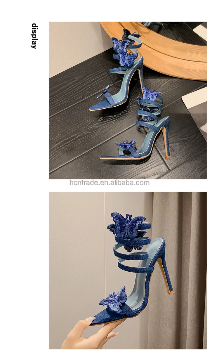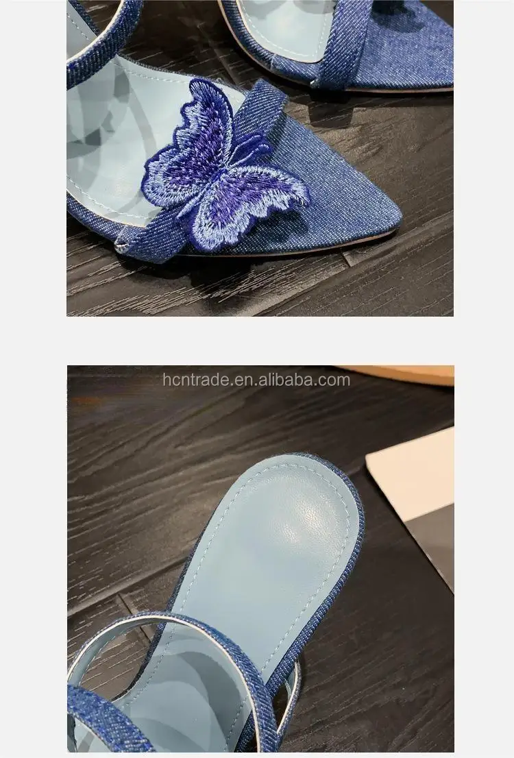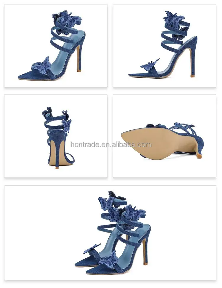 BUSY GIRL XSD417 blue denim butterfly heels for ladies heeled sandals women party dress shoes 2024 fashion coil high heels shoes