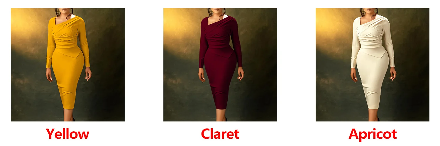 D518 Latest Design Autumn Casual Dresses Women Elegant Wrap Hip Slant Neck Long Sleeve Ruched Office Dress for Women