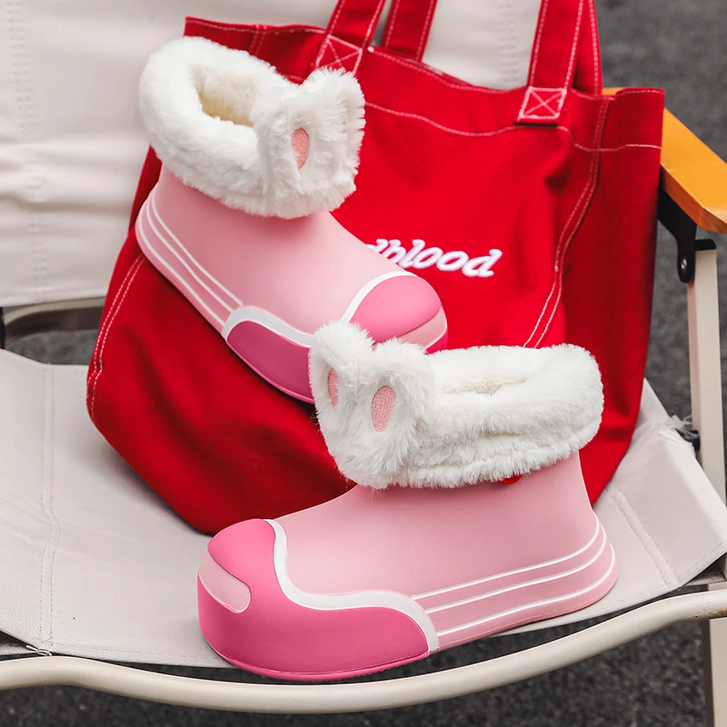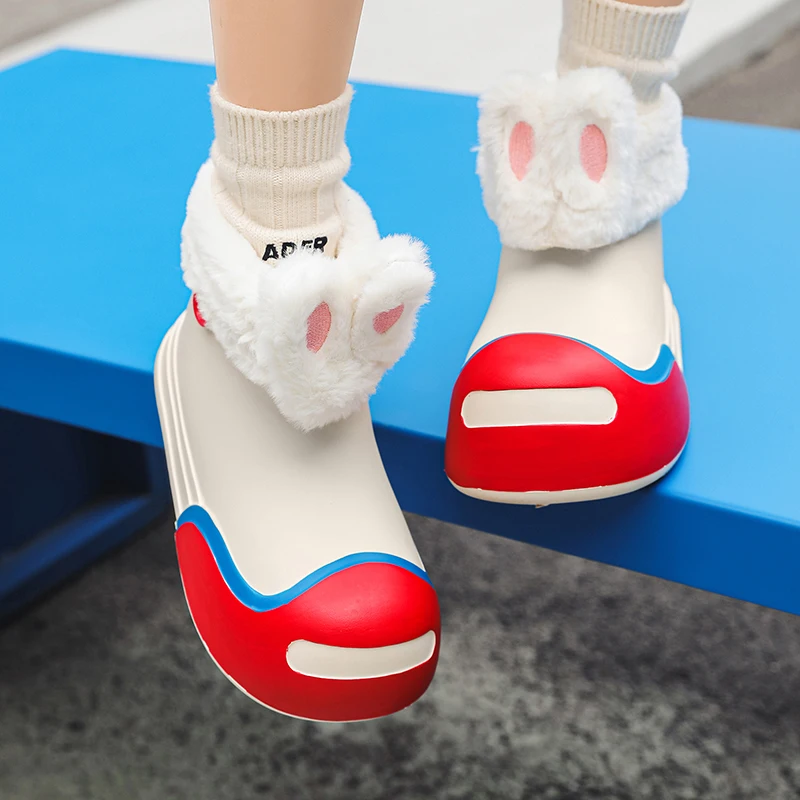 Designer Thick Soled Rain Boots Jelly 3 Color Rain Boots For Women Rubber Casual Shoes Women'S High Top Flat Owens Boots