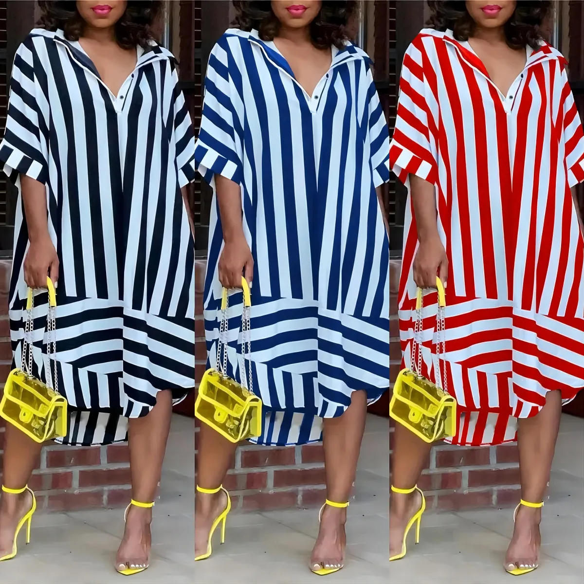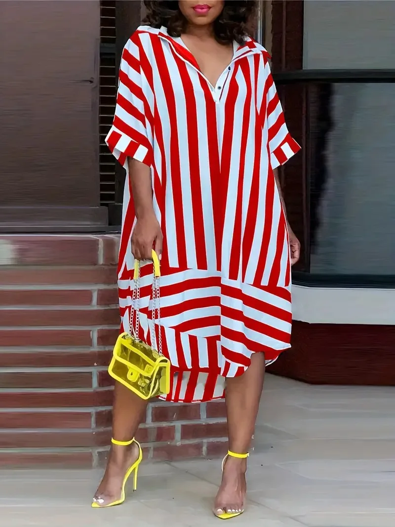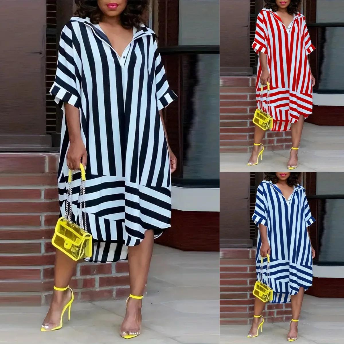 Fashion V Neck Half Sleeve Irregular Dress Striped Printed Women's Casual Dresses Sehe Fashion