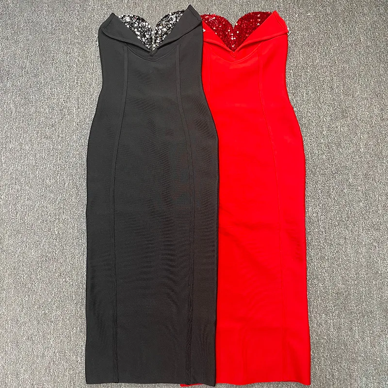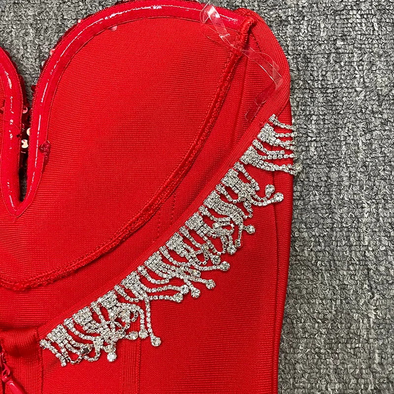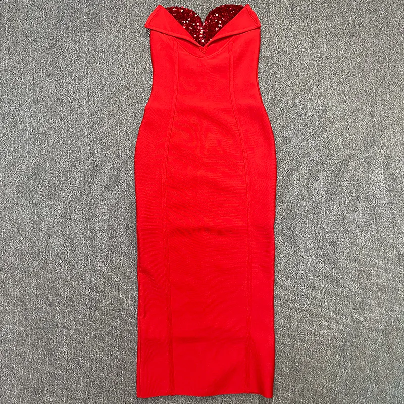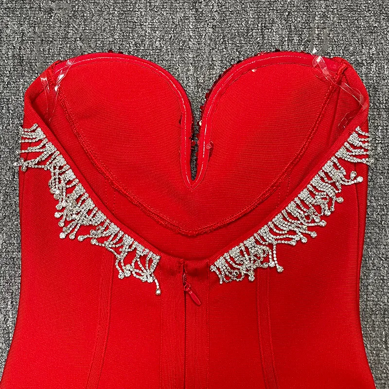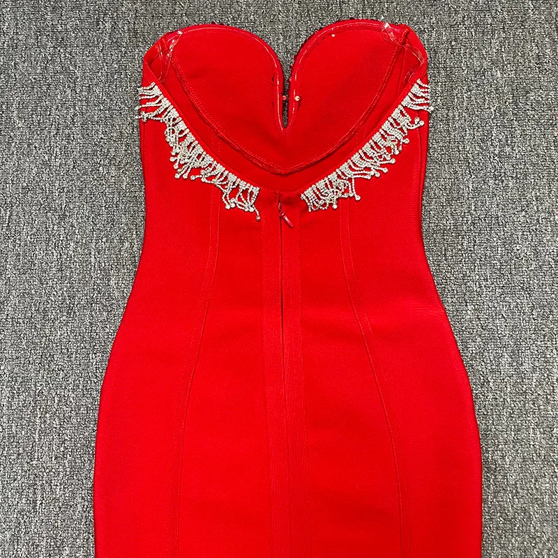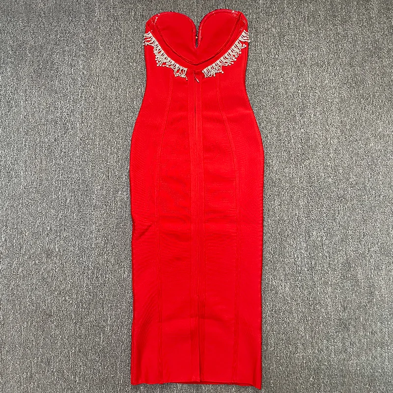Liu Ming High End Vintage Elegant Strapless Rhinestone Fringe Long Gown Evening Dress for Women