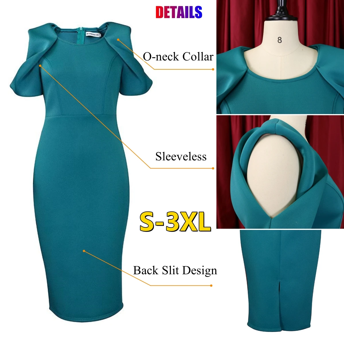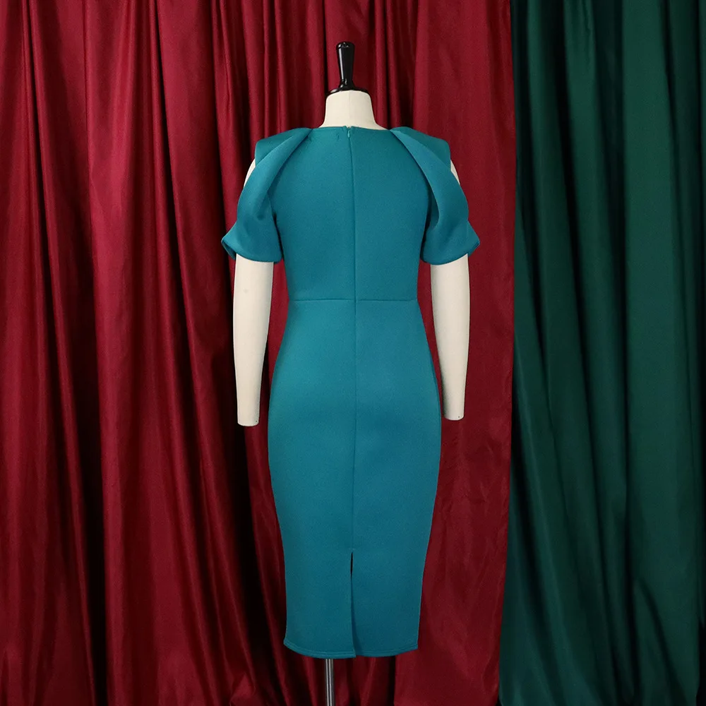 New African Women Elegant Dress Short Sleeve Hollow Out Summer Party Dress Knee Length Lady Solid Pencil Dress