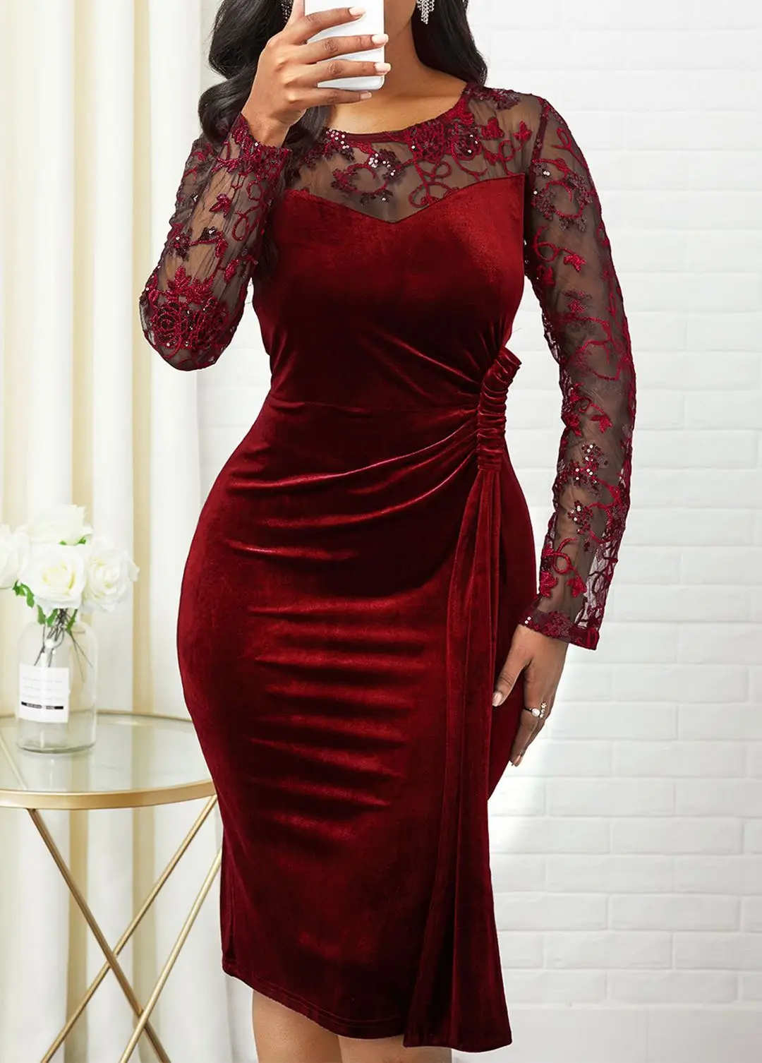 New fashion embroidery sexy velvet formal bodycon office ladies wear Career Casual Womens Dresses
