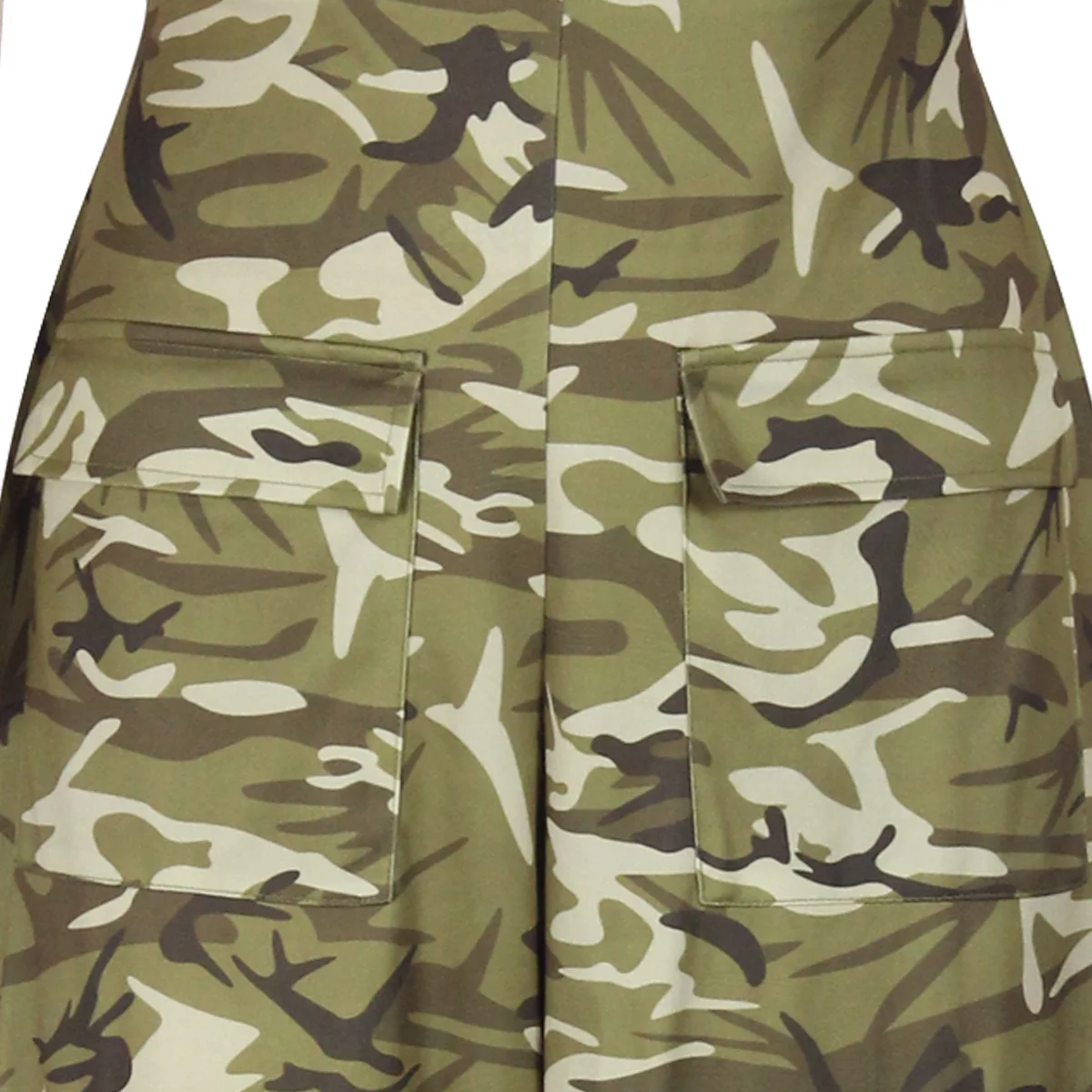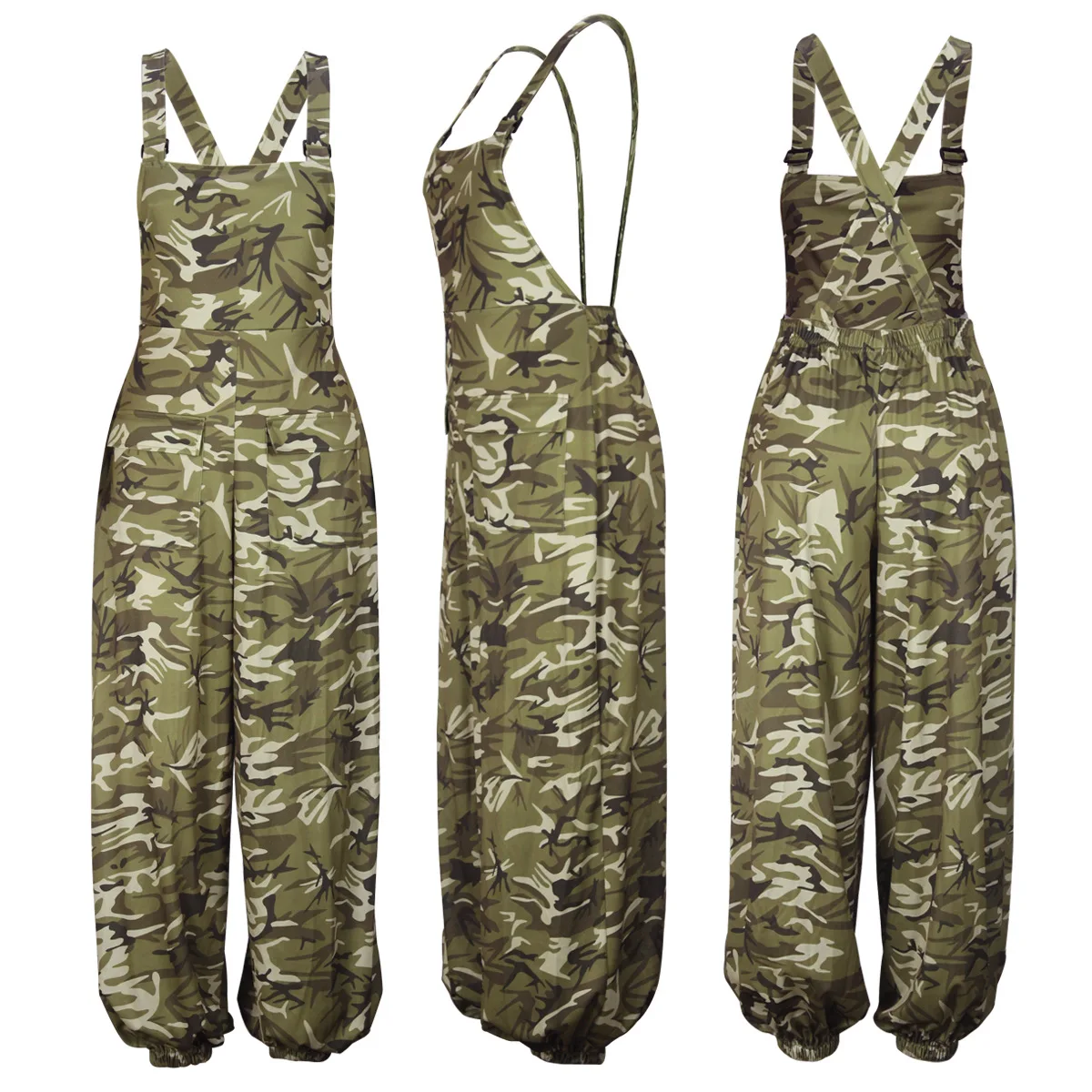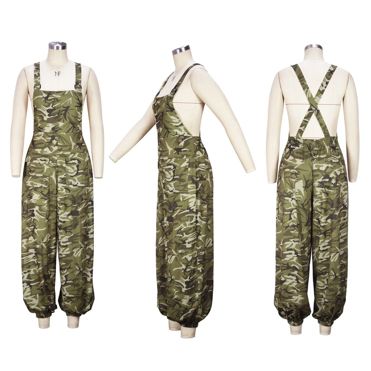 Wholesale Casual Camouflage One Piece Sleeveless Backless Jumpsuits Baggy Street Cargo Pants Dungarees for Women